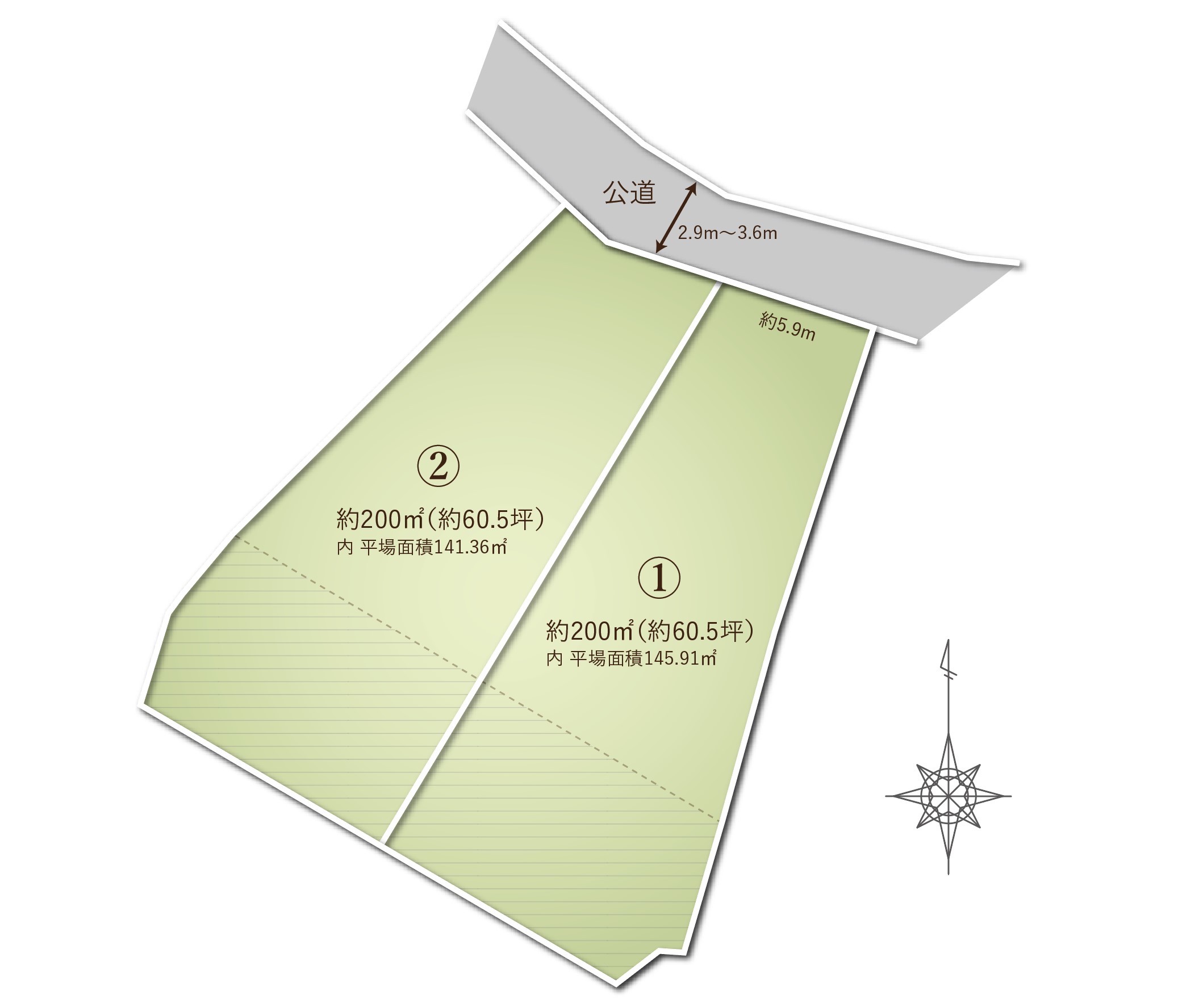 ①145.9㎡(44.1坪)②141.3㎡(42.7坪)